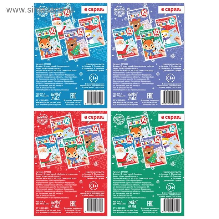 Блокноты IQ набор «Новогодние задачки», 4 шт. по 36 стр.