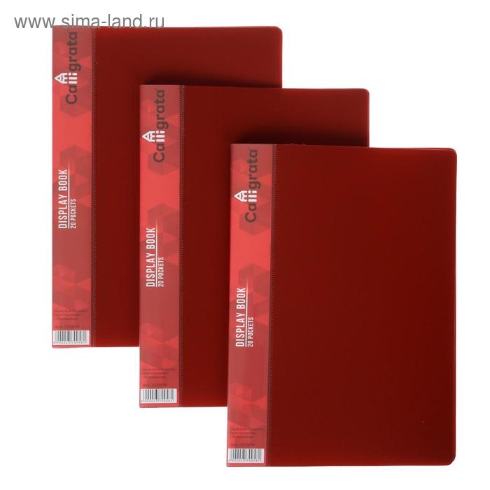 Набор папок А5, 20 вкладышей, Calligrata, карман на корешке, красные, 3 штуки