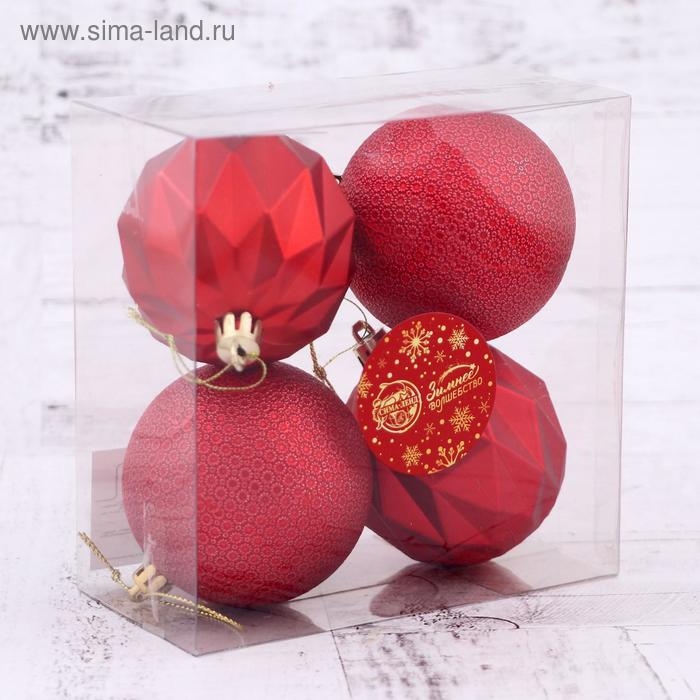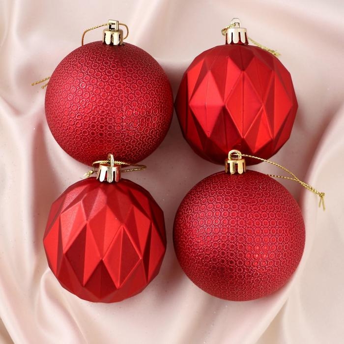 Набор шаров пластик d-7 см, 4 шт "Геометрия форм" красный