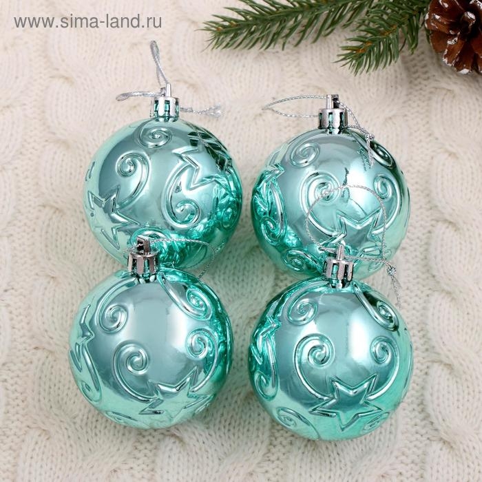 Набор шаров пластик d-6 см, 4 шт "Звёздочки" зелёный