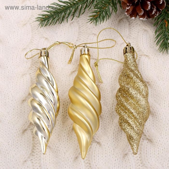 Украшение ёлочное "Сосулька блеск" (набор 6 шт) 3х10 см, золото