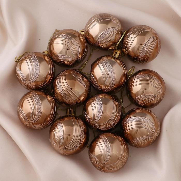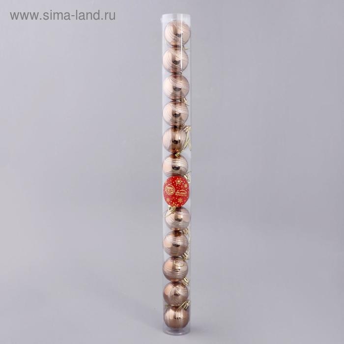 Набор шаров пластик d-4 см, 12 шт "Вертикаль" коричневый