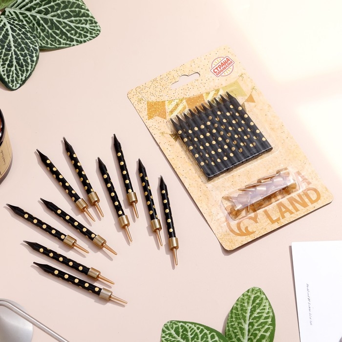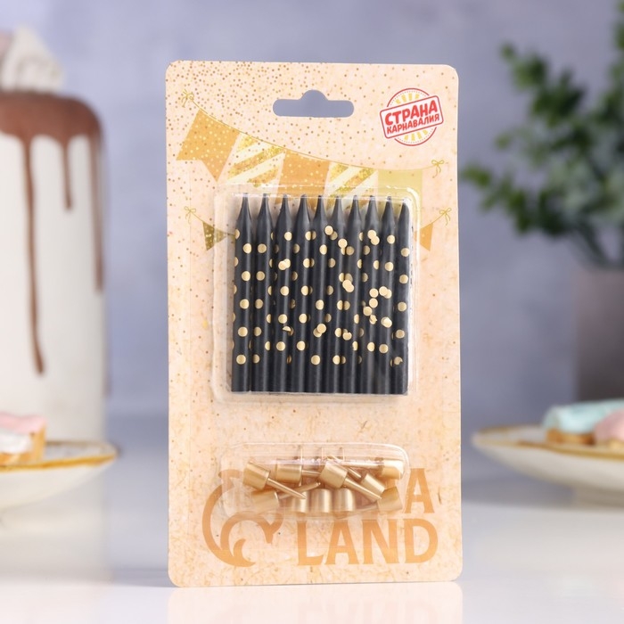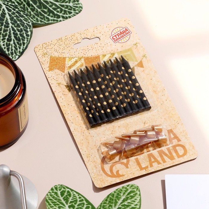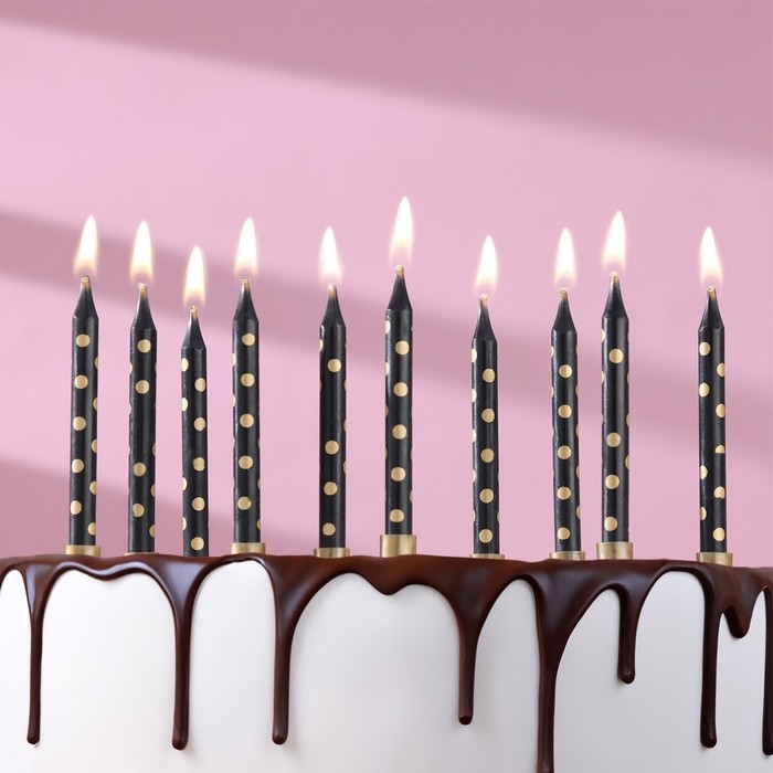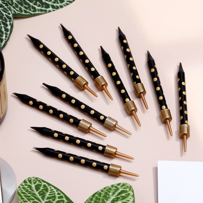 Свечи в торт "Золотая горошина", 6 см, 10 шт, чёрные