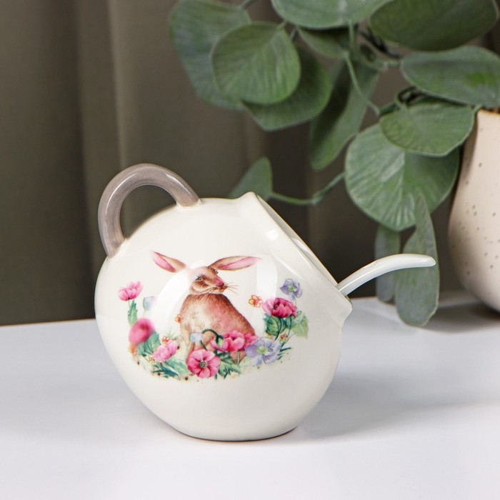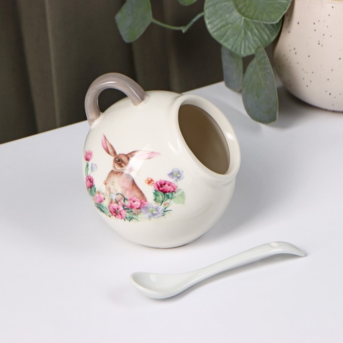 Сахарница с ложкой Доляна «Зайка», 200 мл, цвет белый