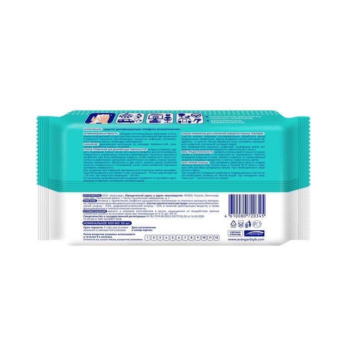 Обладают антимикробным действием в отношении возбудителей острых респираторных заболеваний бактериальной и вирусной этиологии, кишечных инфекций бактериальной и вирусной этиологии, грибковых заболеваний (кандидозы). Салфетки антисептические по назначению рекомендуется применять для дезинфекции любых поверхностей и предметов, однако также возможно применение данных салфеток для кожи рук, т.к. салфетки прошли все этапы регистрации продукции и признаны безвредными для использования людьми и пригодными к использованию.