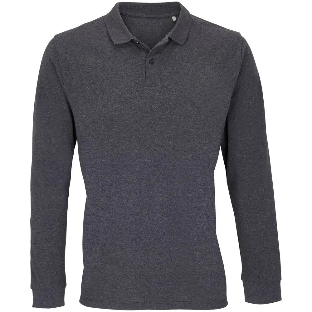 Рубашка поло унисекс с длинным рукавом Planet LSL, черный меланж, размер S