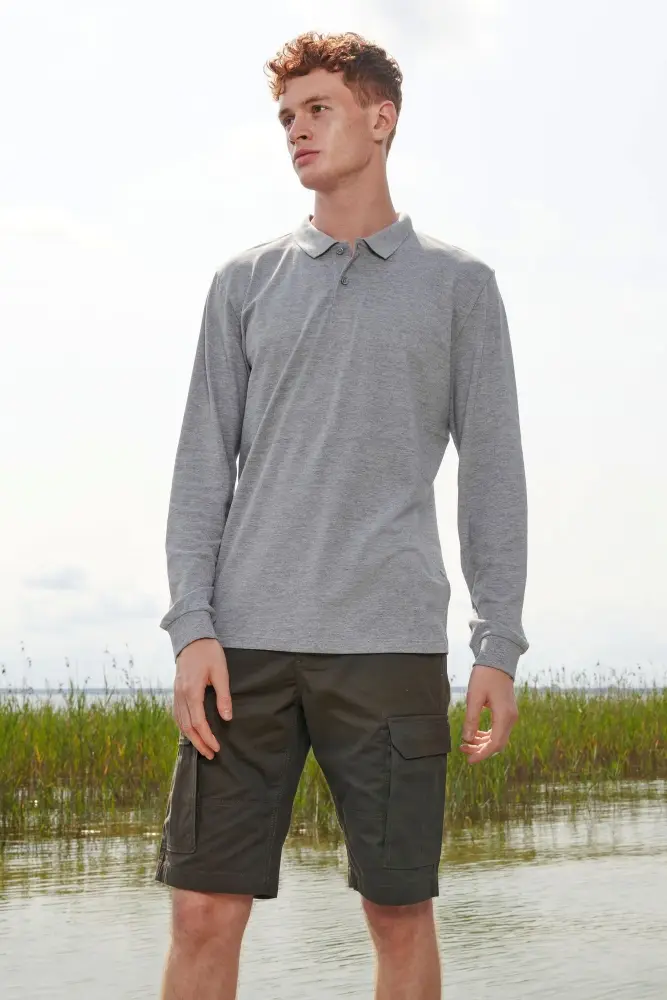 Рубашка поло унисекс с длинным рукавом Planet LSL, серый меланж, размер M