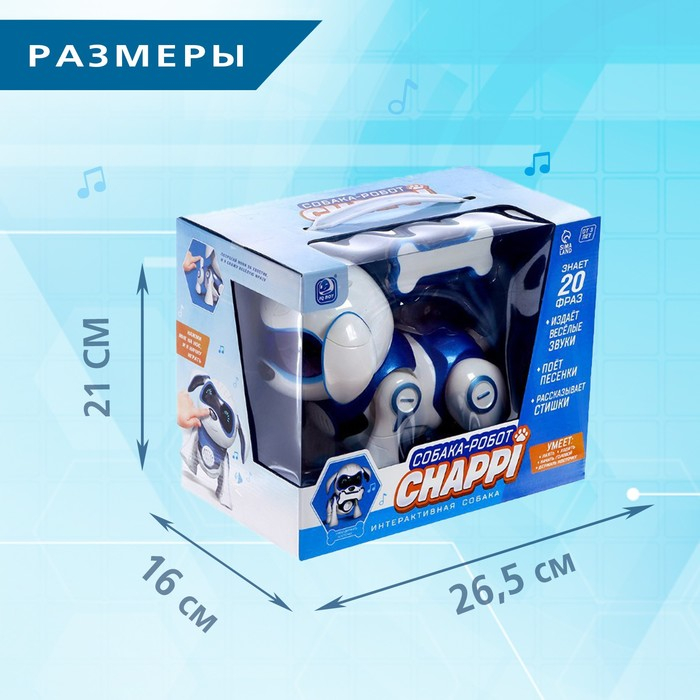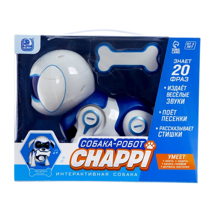 Робот собака «Чаппи» IQ BOT, интерактивный: сенсорный, свет, звук, музыкальный, танцующий, на аккумуляторе, на русском языке, синий