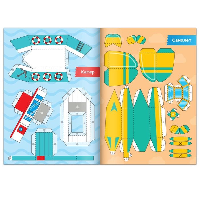 В ней ребёнок найдёт целых 8 моделек транспорта, которые нужно собрать из бумаги. Малышу предстоит вырезать детали и склеить их между собой.