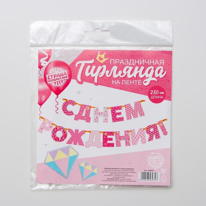 Гирлянда «С днём рождения!», принцессы, бумажная