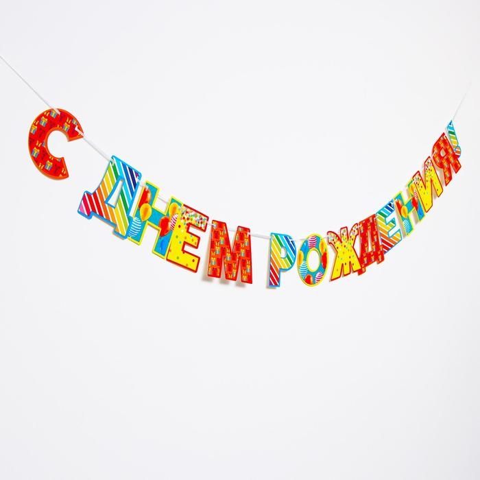 Гирлянда на ленте новогодняя «С Новым годом!», на Новый год, радужная, длина 1.3 м.