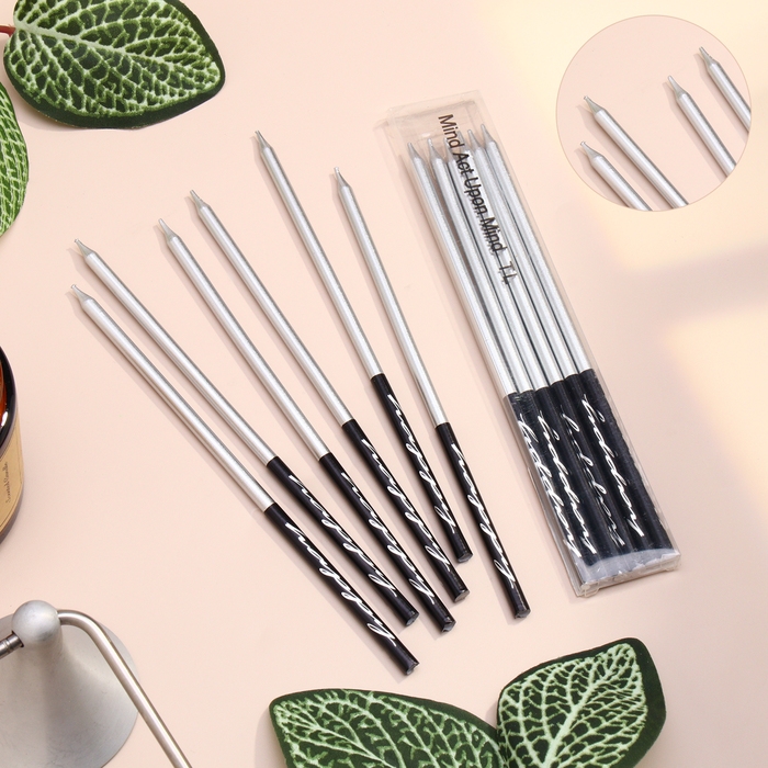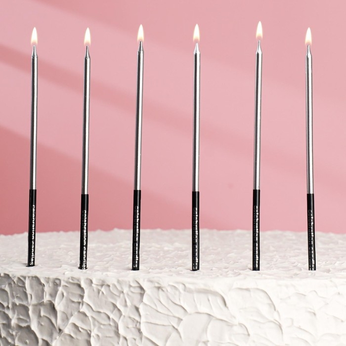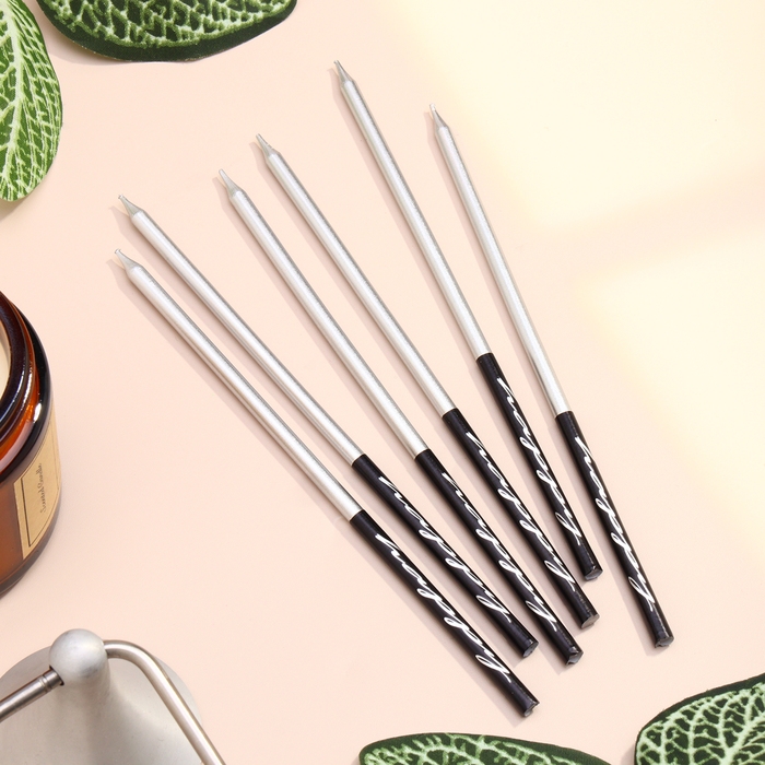 Свечи в торт "Праздник", 6 шт, 14,5 см, серебро с чёрным