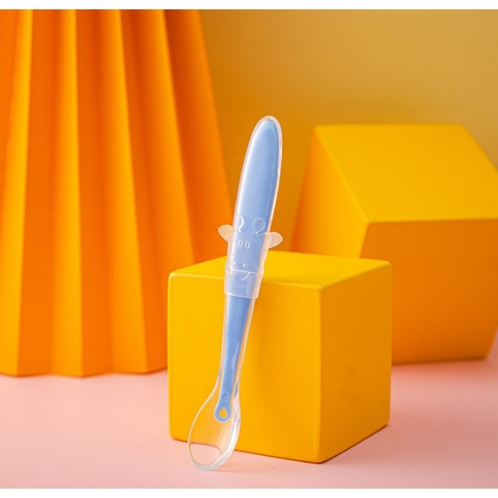 Ложка силиконовая детская «Жирафик», цвет голубой
