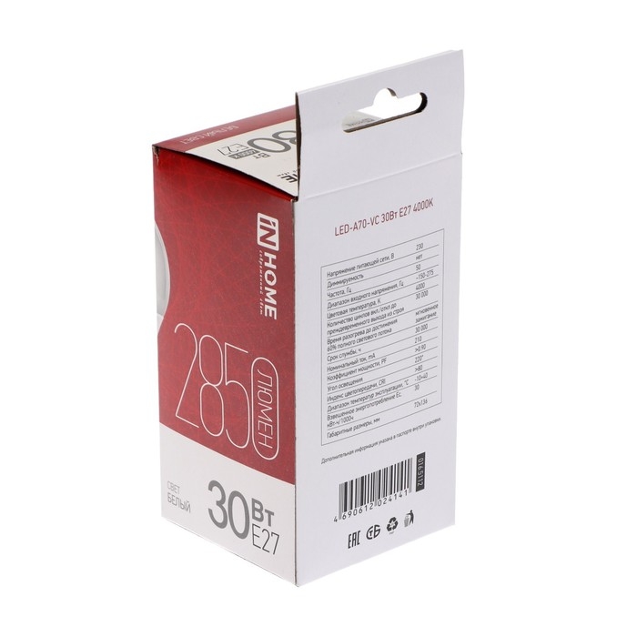 Лампа светодиодная IN HOME LED-A70-VC, Е27, 30 Вт, 230 В, 4000 К, 2850 Лм