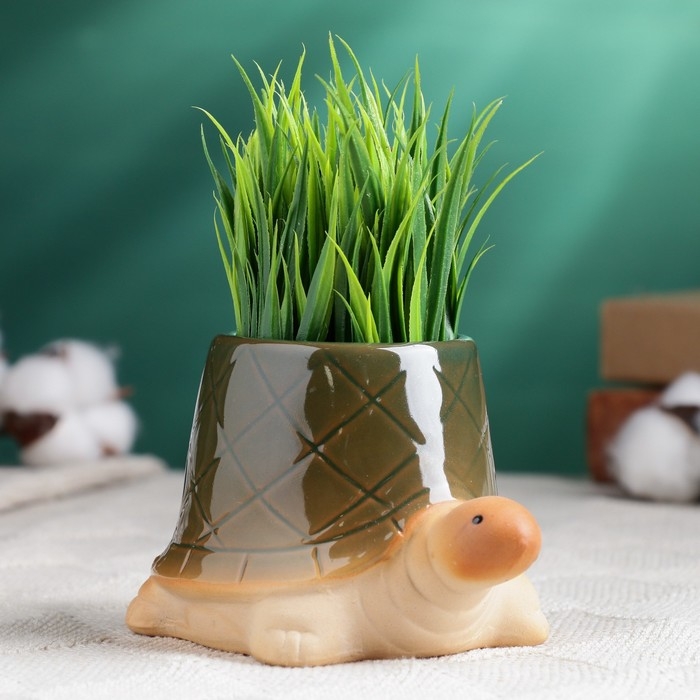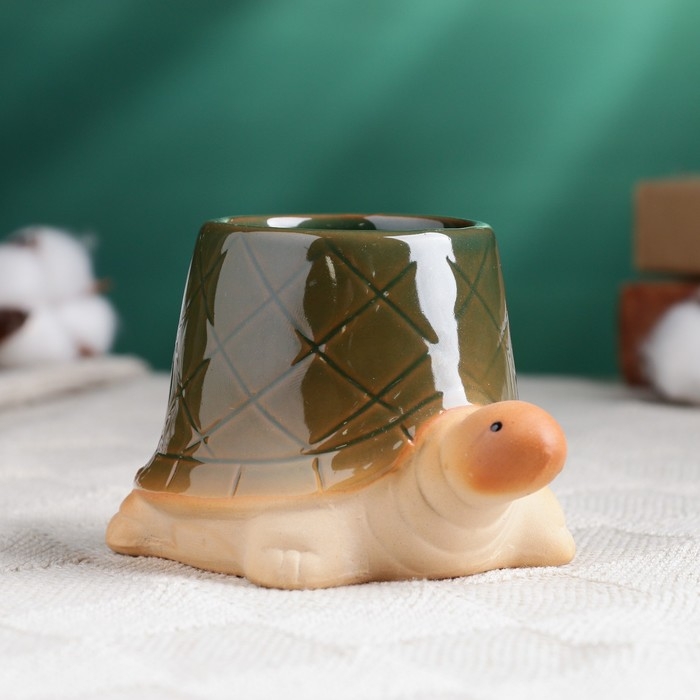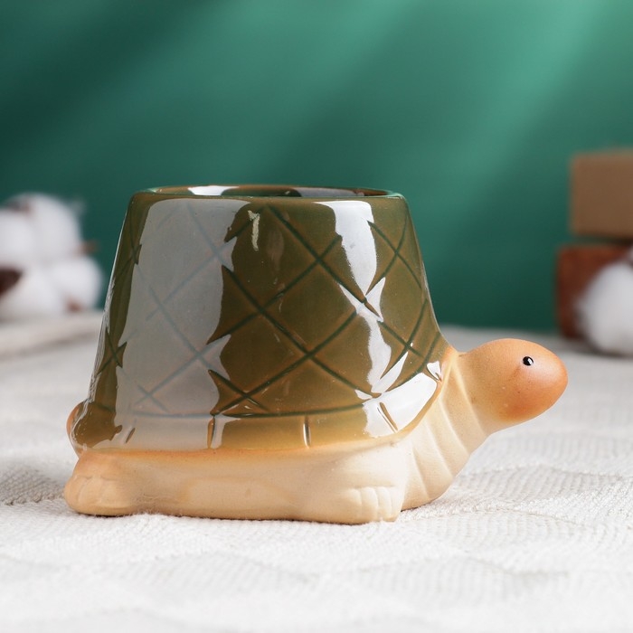 Горшок "Черепашка" зеленый, 12х8х7см