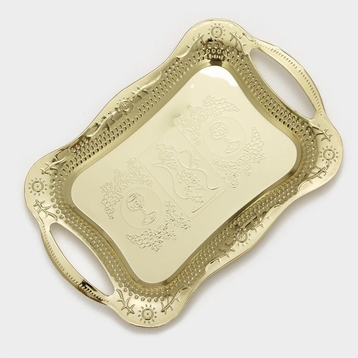 Поднос из нержавеющей стали с ручками «Изобилие. Золото», 31×20×2 см, цвет золотой