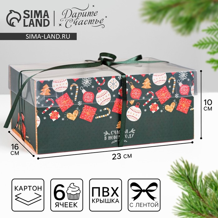 Коробка для капкейка «Счастья в Новом году», 23 х 16 х 10 см, Новый год
