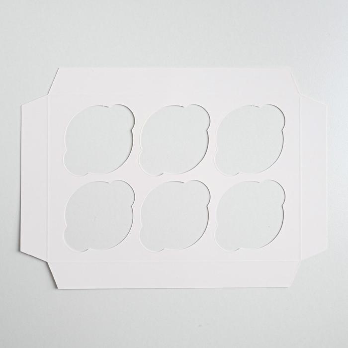 Коробка на 6 капкейков с окном, белая, 25 х 17 х 10 см