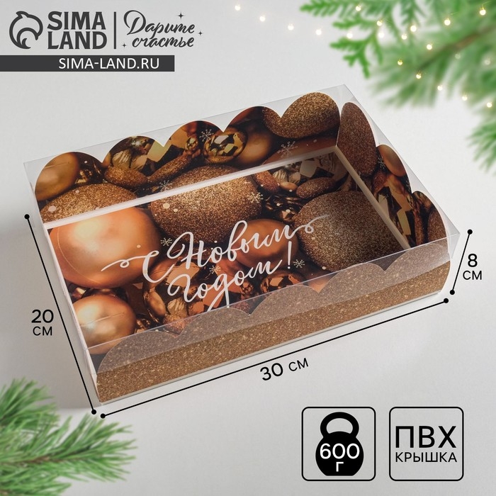 Коробка подарочная с PVC крышкой «С Новым годом!», 20 х 30 х 8 см, Новый год