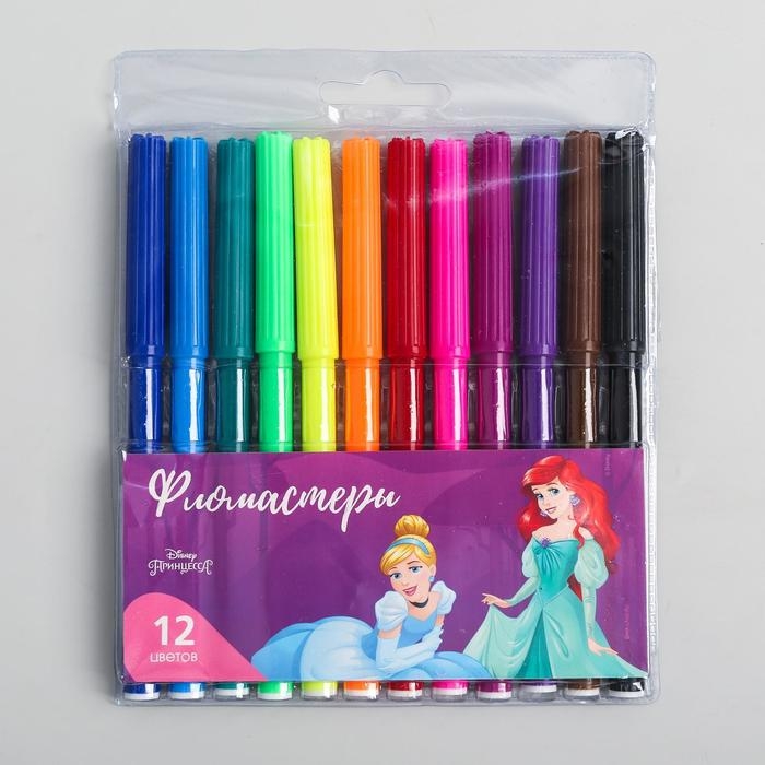 Фломастеры, 12 цветов, Принцессы