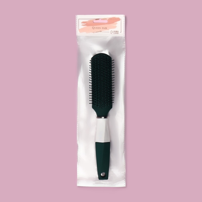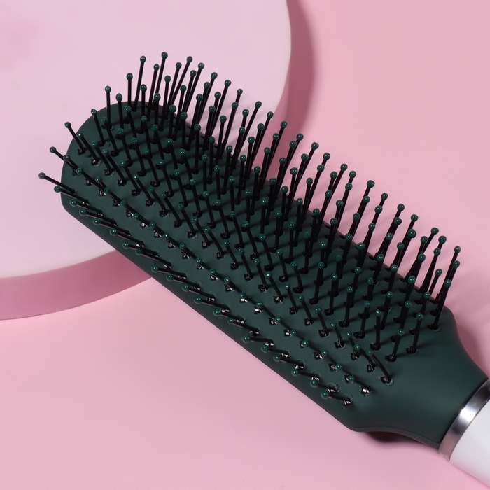 Расчёска массажная, прорезиненная ручка, 4 × 23 см, цвет зелёный/белый