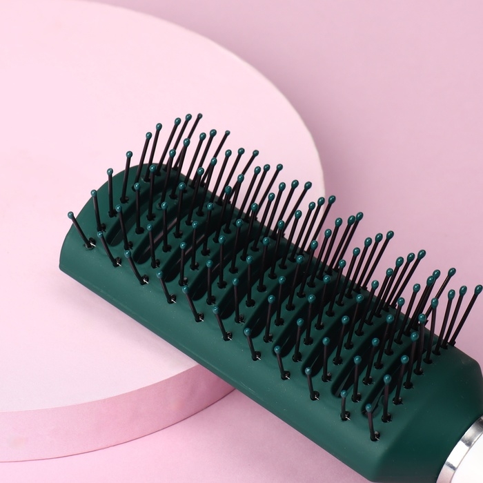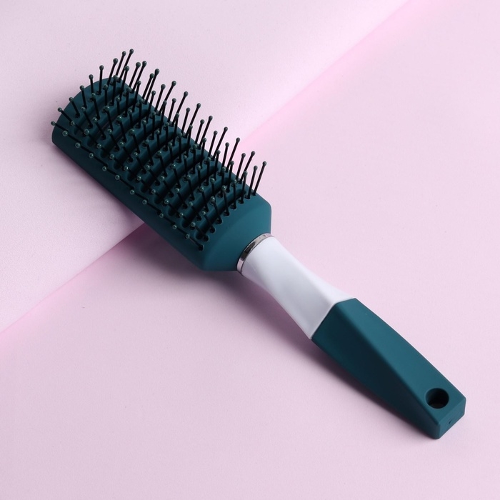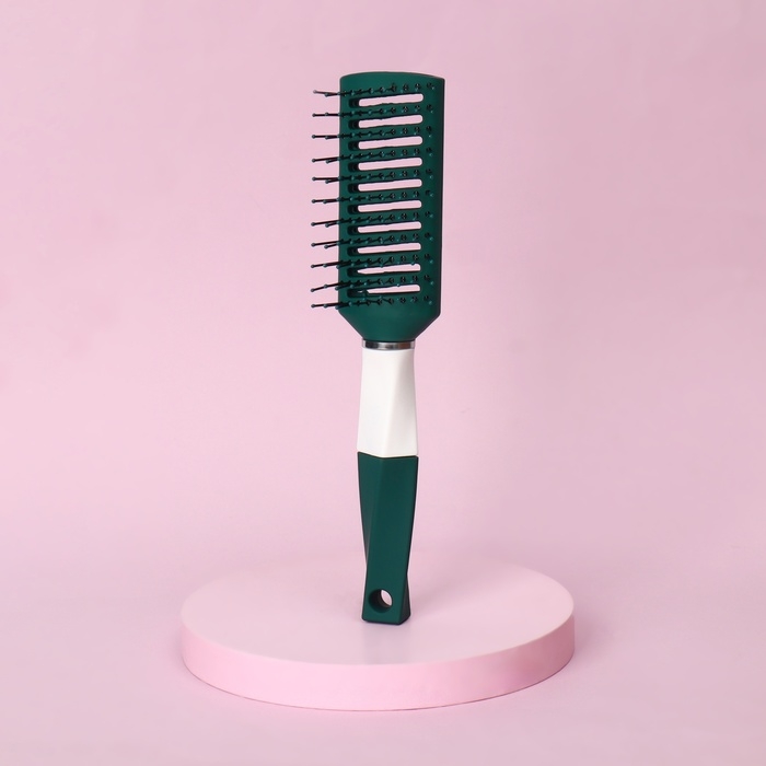 Расчёска массажная, прорезиненная ручка, вентилируемая, 4,5 × 22,5 см, цвет зелёный/белый