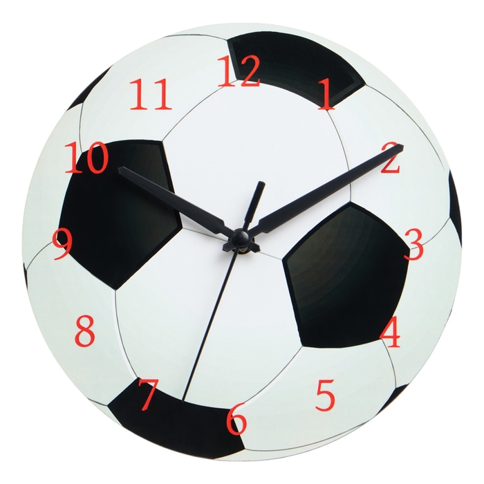 Настенные часы - это отличный способ добавить в интерьер помещения индивидуальность и уют. Они могут стать ярким акцентом в комнате или же дополнением к общей концепции дизайна. Данные часы выполнены в форме футбольного мяча. Они добавят в помещение спортивный и динамичный акцент, что сделает его более ярким и живым. Диаметр часов составляет 23,5 см, что делает их достаточно крупными, чтобы легко читать время с любого расстояния, но в то же время не занимают слишком много места на стене. Их компактные размеры делают их подходящими для небольших помещений, где каждый сантиметр имеет значение. Часы очень легкие, размещаются на стене всего на одном креплении, что делает установку простой и быстрой. Вы сможете легко прикрепить их к любой стене без необходимости использовать дополнительные инструменты или обращаться к профессионалам.