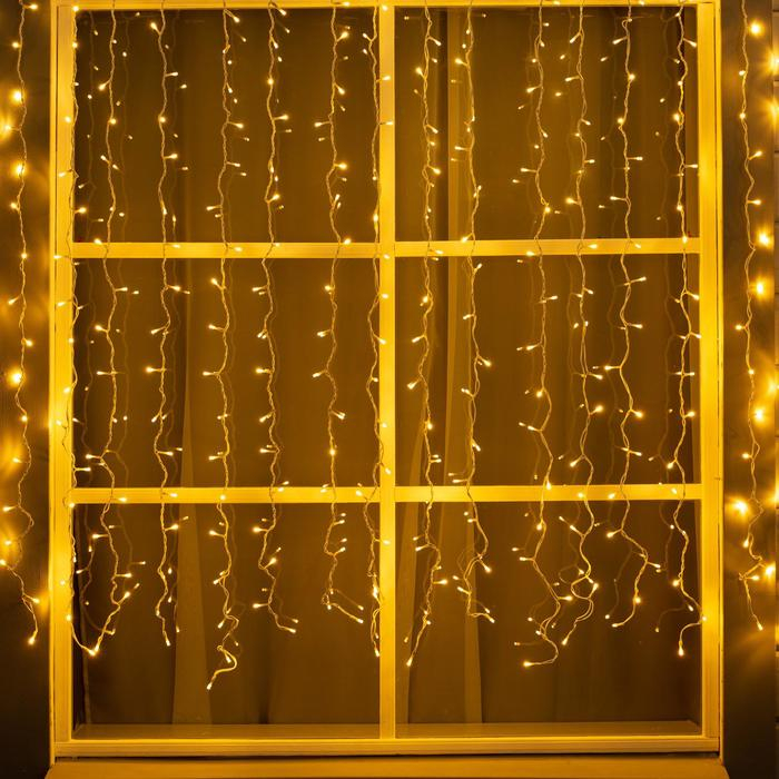 Гирлянда «Занавес» 2 × 1.5 м, IP44, УМС, белая нить, 360 LED, свечение тёплое белое, 220 В