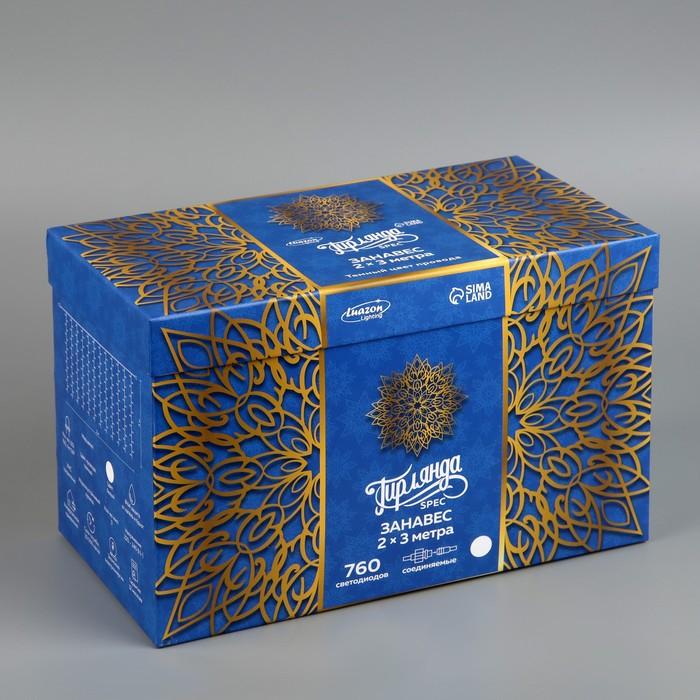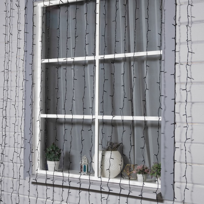 Гирлянда «Занавес» 2 × 3 м, IP44, УМС, тёмная нить, 760 LED, свечение белое, мерцание, 220 В