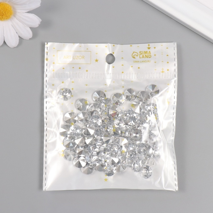 Декор для творчества пластик "Стразы алмаз. Прозрачные" набор 60 шт d=1 см