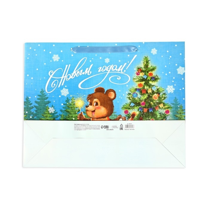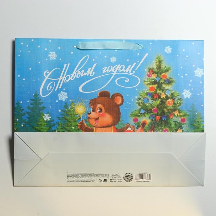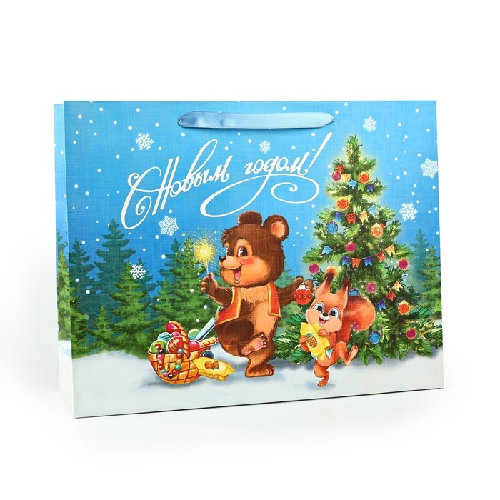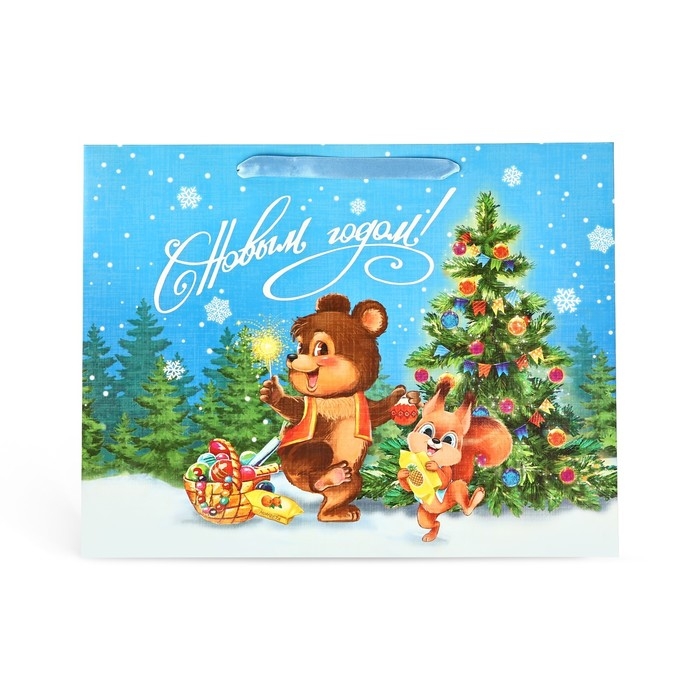 Пакет подарочный новогодний ламинированный «Зверята возле ёлки», L 40 х 31 х 11,5 см, Новый год