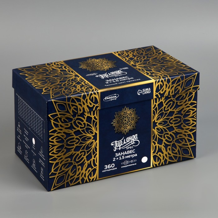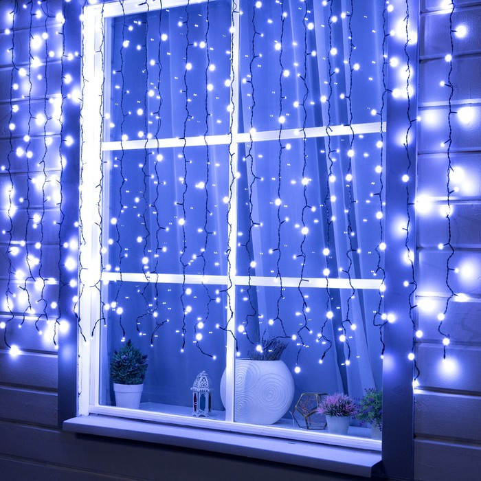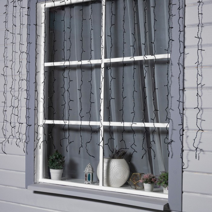 Гирлянда «Занавес» 2 × 1.5 м, IP44, УМС, тёмная нить, 360 SMD-LED, свечение белое, 220 В