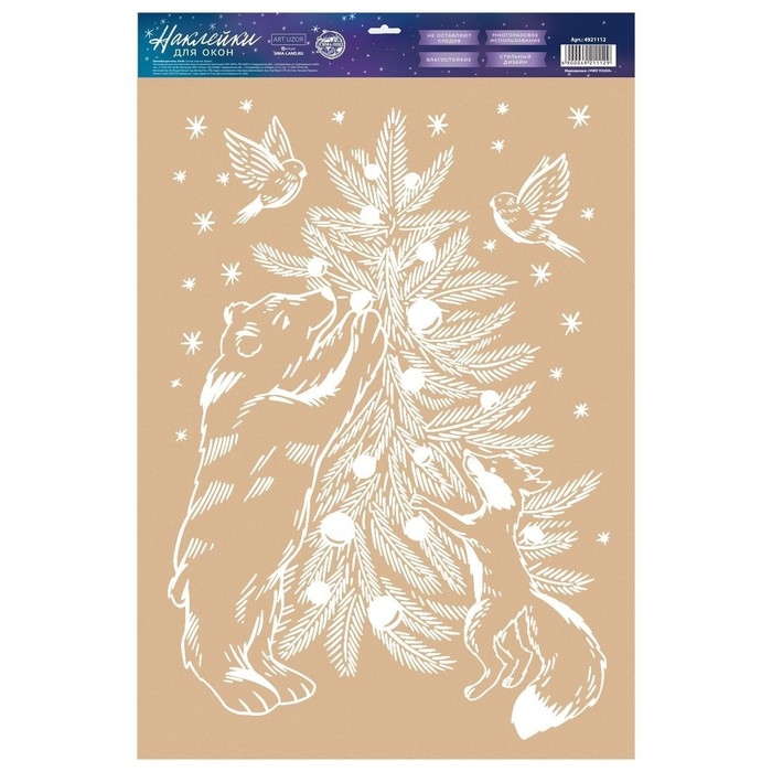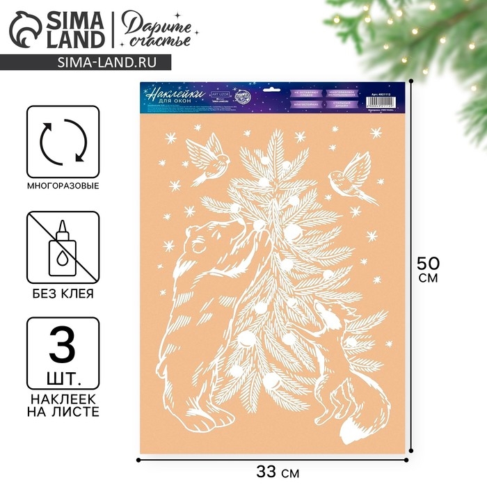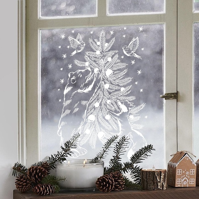 Наклейки новогодние для окон «Гравюра», многоразовые, 33 х 50 см, Новый год