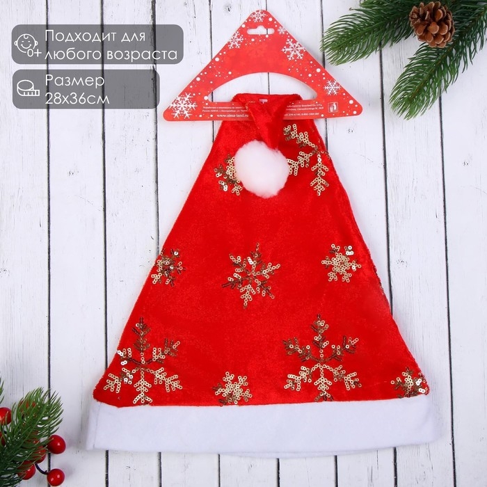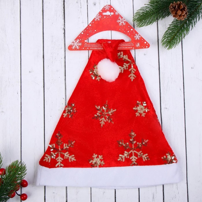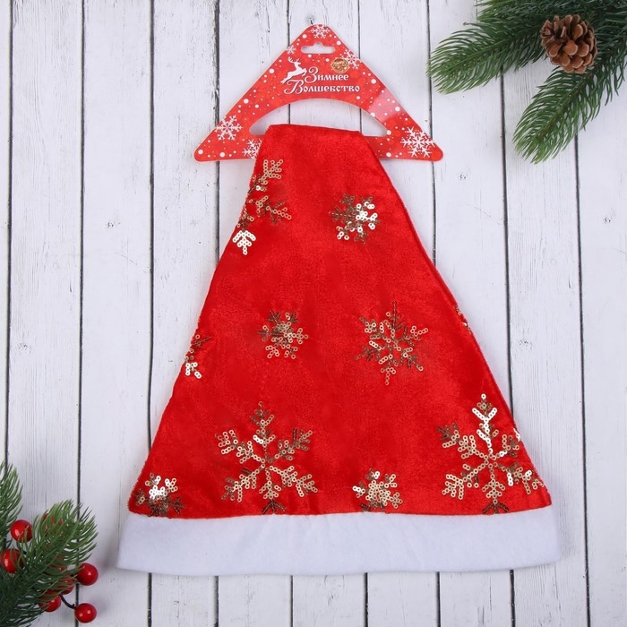 Колпак новогодний "Золотистые снежинки" 28х36 см, красный