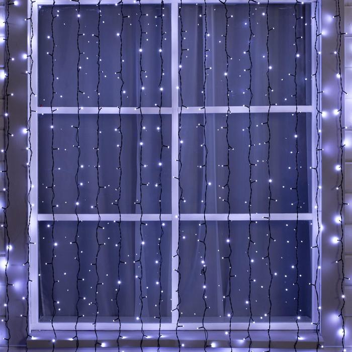 Гирлянда «Занавес» 2 × 3 м, IP44, УМС, тёмная нить, 760 SMD-LED, свечение белое, 220 В