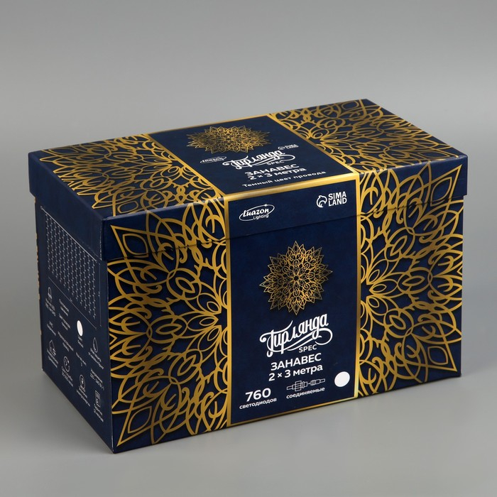 Гирлянда «Занавес» 2 × 3 м, IP44, УМС, тёмная нить, 760 LED, свечение тёплое белое, 220 В