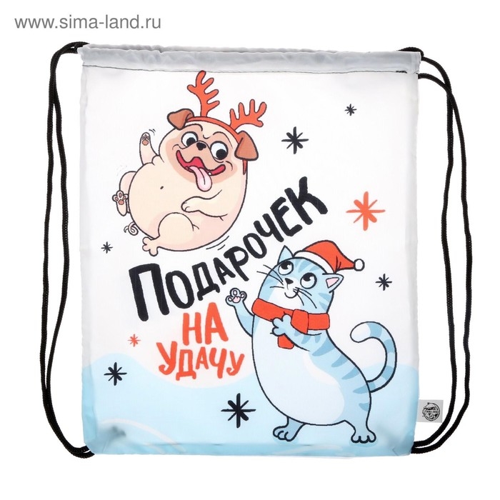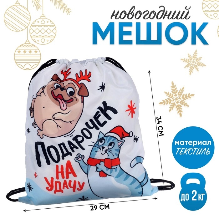 Новый год. Сумка под сладости 290 х 340 мм, "Подарочек на удачу" (мягкий полиэстер плотностью 210D)