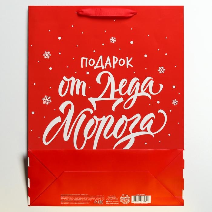Пакет подарочный новогодний ламинированный «Подарок от Деда Мороза», L 31 х 40 х 11,5 см, Новый год