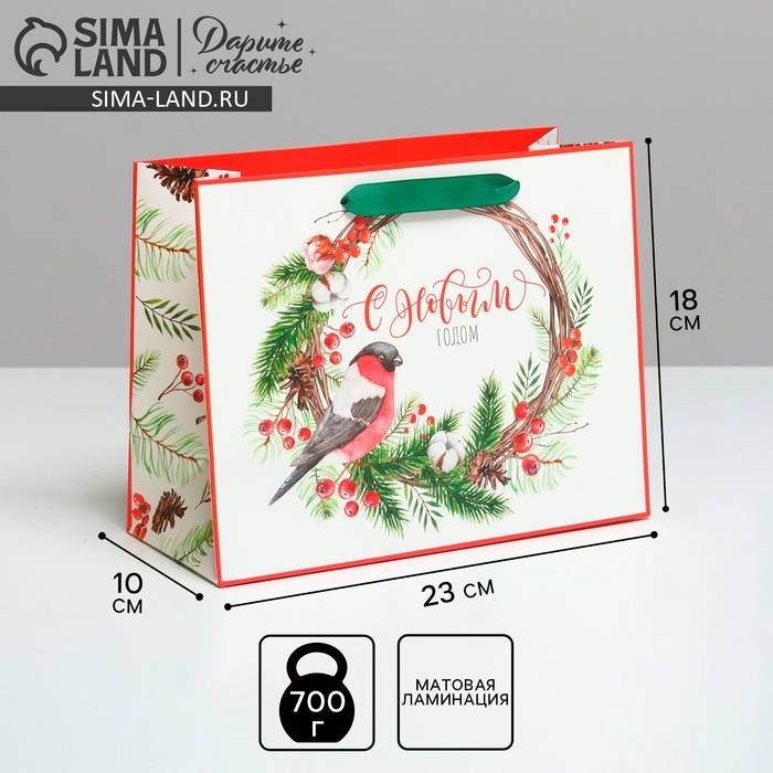Пакет подарочный новогодний ламинированный «С Новым годом», MS 23 х 18 х 10 см, Новый год