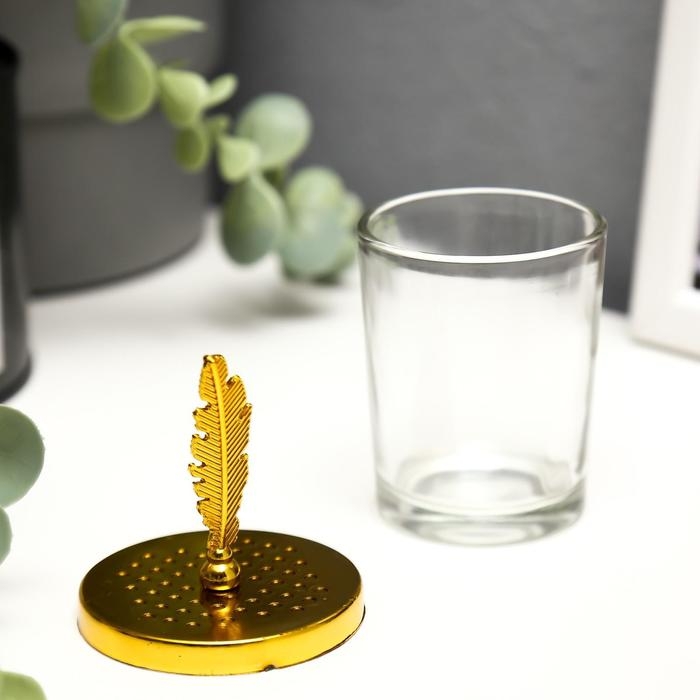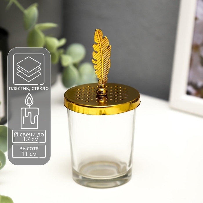 Подсвечник стекло на 1 свечу "Пёрышко" золото 11х5,5х5,5 см