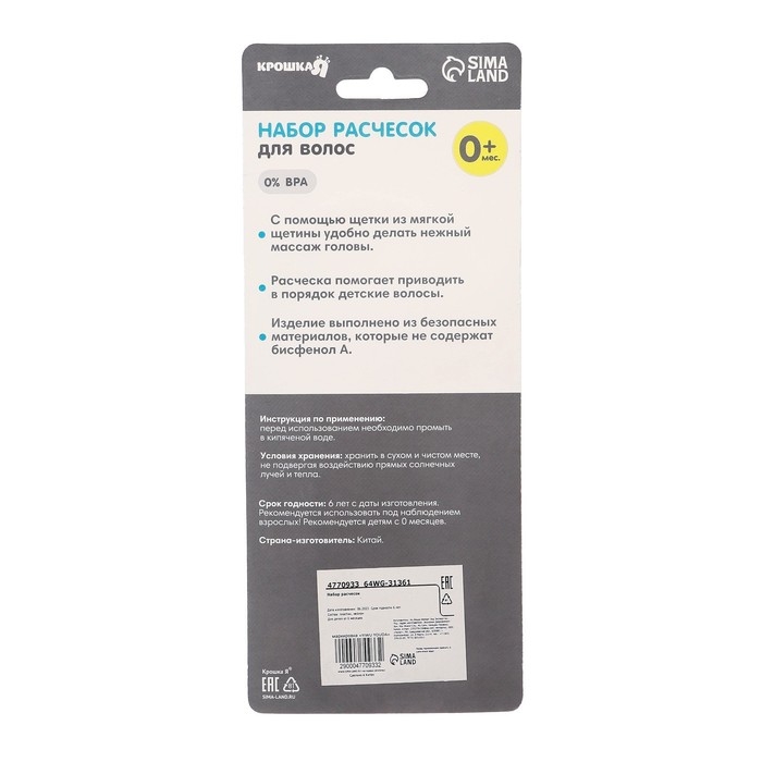 Расческа-щетка с мягкой щетиной и удобная расческа с закругленными зубчиками предназначены для малышей с первых дней жизни.