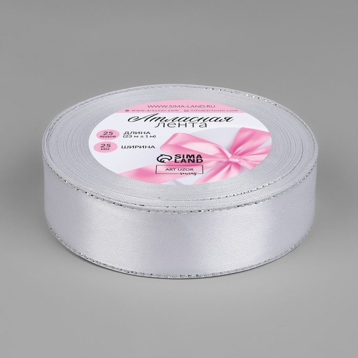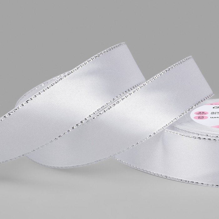 Лента атласная «Серебряные нити», 25 мм × 23 ± 1 м, цвет белый №001