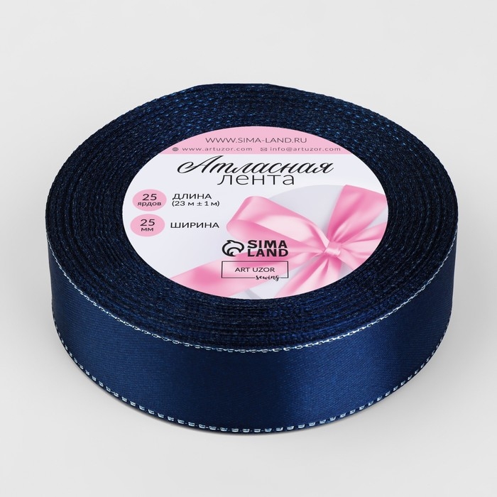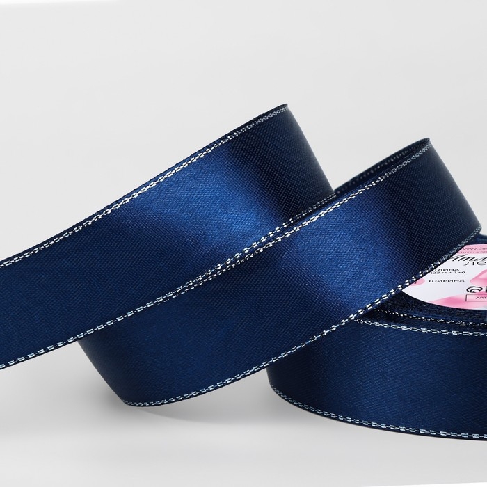 Лента атласная «Серебряные нити», 25 мм × 23 ± 1 м, цвет синий №038