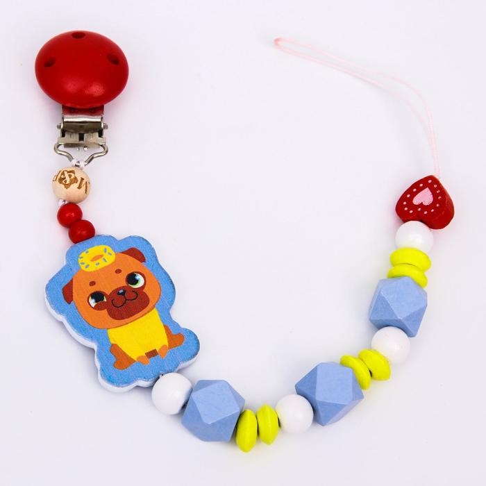 Держатель - игрушка для соски - пустышки «ТРЕНД. Пёсики» из дерева