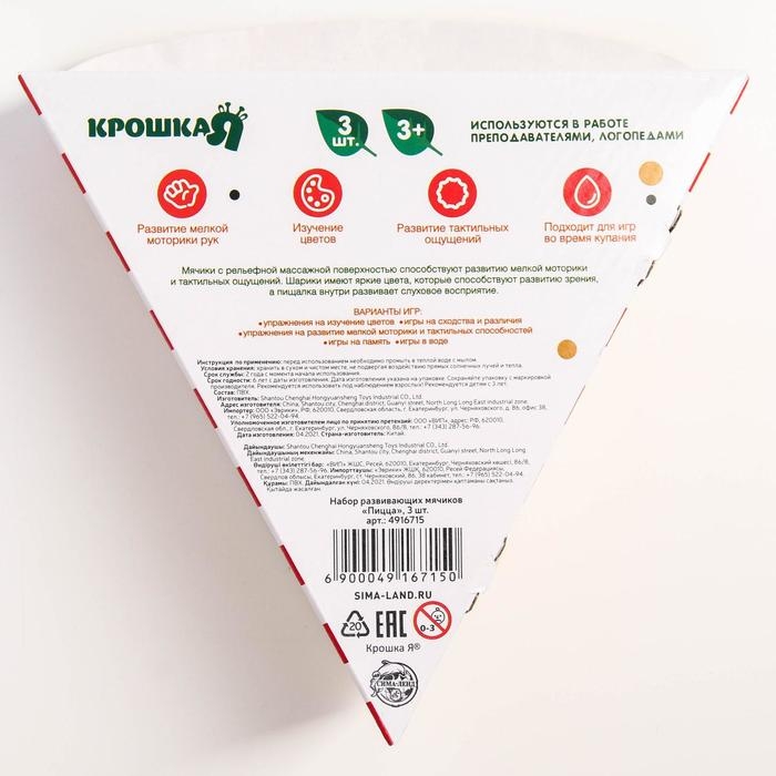 Набор развивающих тактильных мячиков «Пицца», с пищалкой, 3 шт, Крошка Я