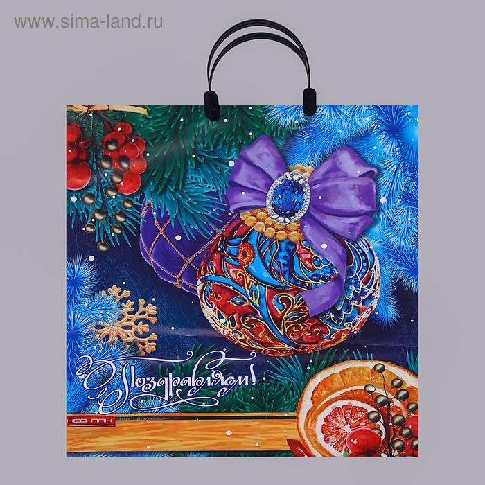 Новый год. Пакет "Поздравление", полиэтиленовый с пластиковой ручкой, 40х44 см.