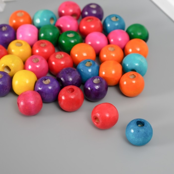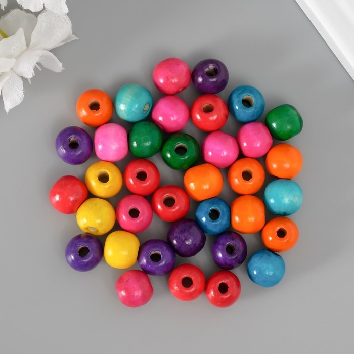 Бусины для творчества дерево "Шарики цветные неон" набор 35 шт d=1,4 см