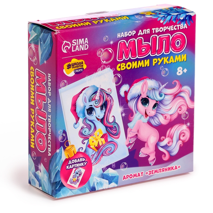 Погрузиться в ремесло мыловара, почувствовать себя создателем чего-то прекрасного и использовать результат своих трудов каждый день — всё это, а ещё и увлекательное времяпрепровождение подарит набор Мыло своими руками на новый год «Новогодний единорог», новогодний набор для мыловарения.