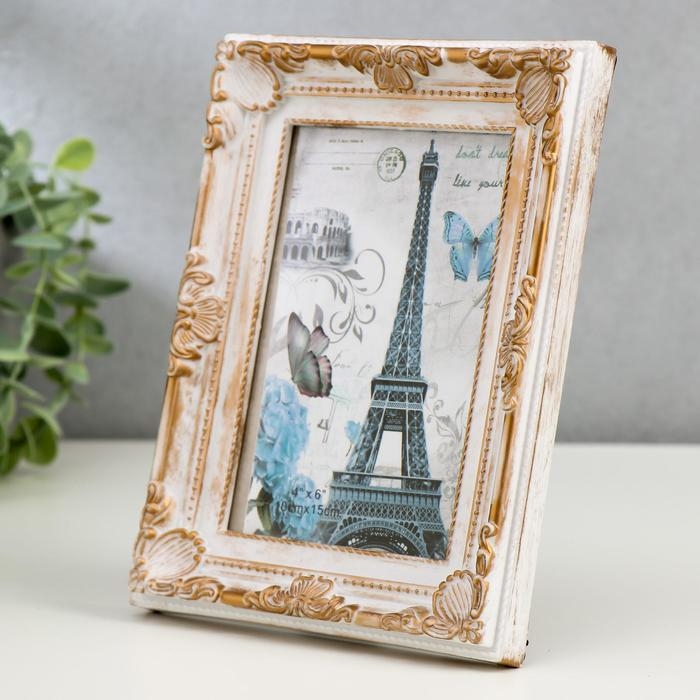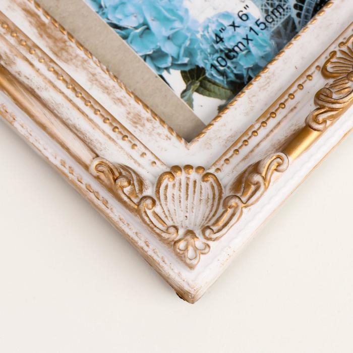Фоторамка пластик 10х15 см "Узоры" белая с золотыми узорами 19,5х14,5 см