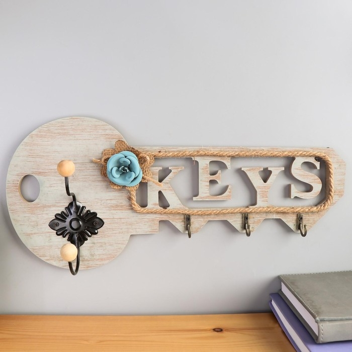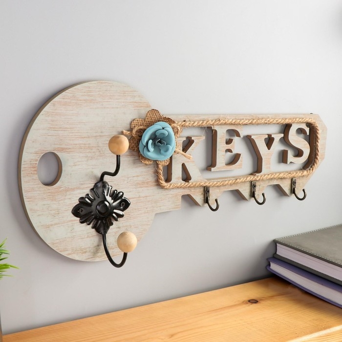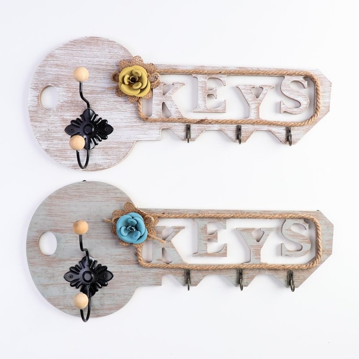 Крючки декоративные дерево "Ключик с цветком" МИКС 17,5х39,5х6,5 см